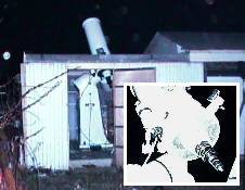 関谷さんご自慢の望遠鏡を自宅で見せていただきました。屋根がスライドして開くと中には大きな望遠鏡が。オリオン座の大星雲もバッチリ!