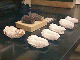 | そのあと、学研の科学の付録を使って、化石のレプリカ作りをやりました。 斎藤さんのていねいな作業によって、三葉虫のレプリカが短時間に5つも出来上がり 、みんなお土産に1つずつもらって帰りました。 |